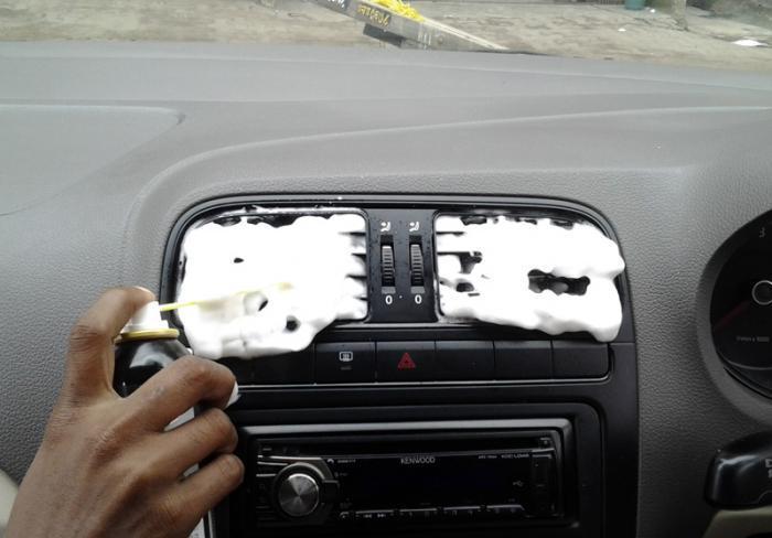Lắc đều dung dịch trước khi sử dụng. Cho một nửa chiều dài ống bơm vào cửa gió lạnh, sau đó thực hiện bơm dụng dịch AC Foam 3M vào các cửa gió.