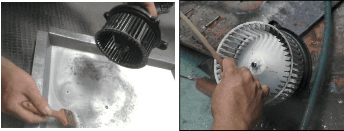 Bước 6: Phun nước bằng sung áp lực vào giàn lạnh